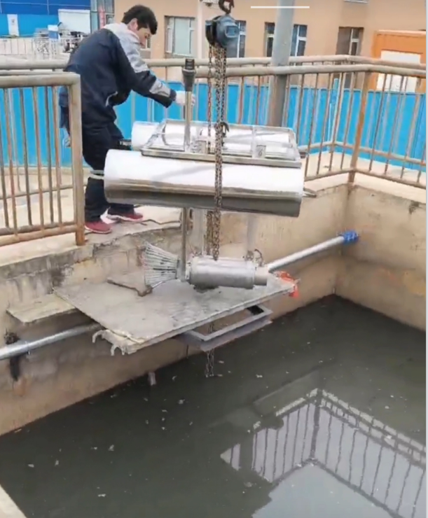 3、潜水推流曝气机一次性投资只有固定污水处理设施的 1/5,且不受空间条件的限制,能在较短的时间内提高水的溶解氧(DO)含量,有效降低水体的有机物和氨氮等污染指数。