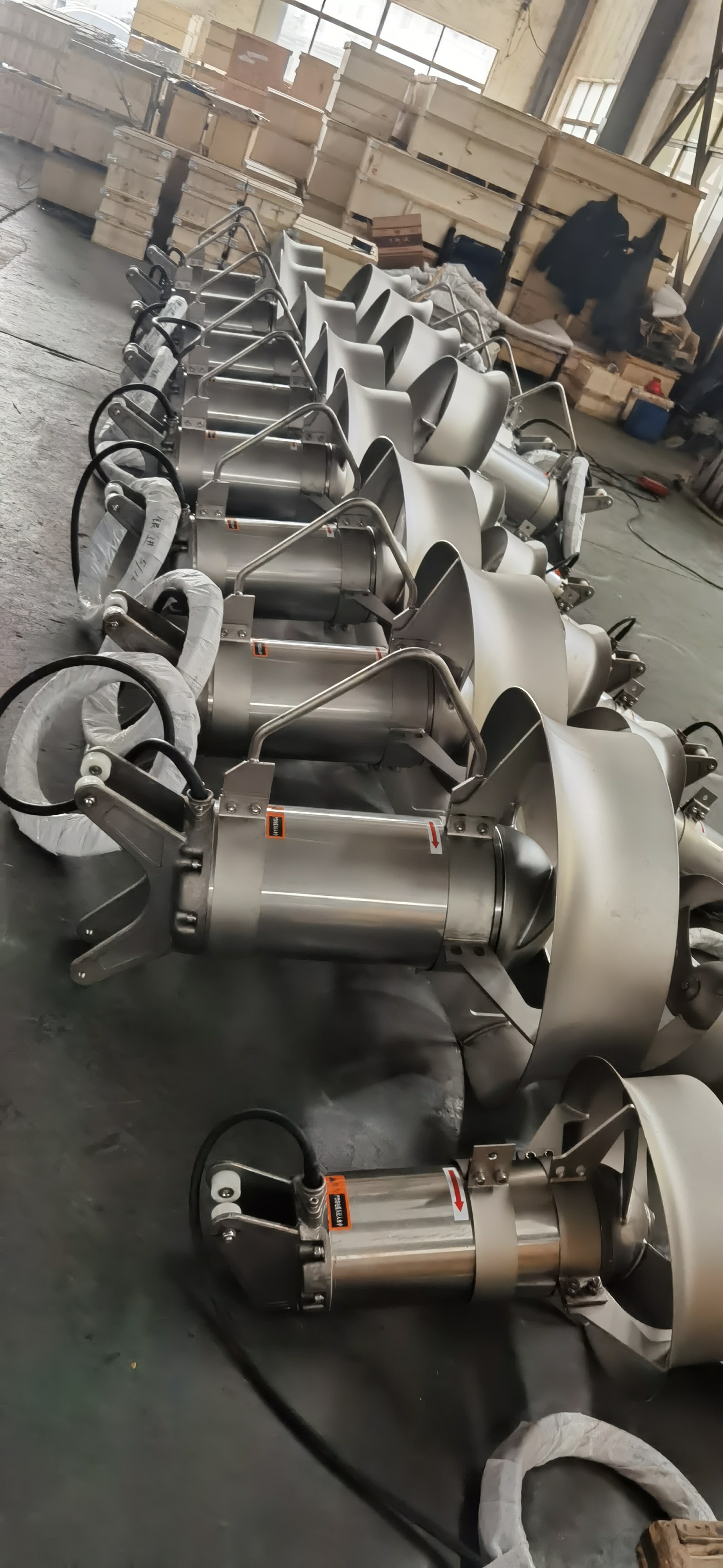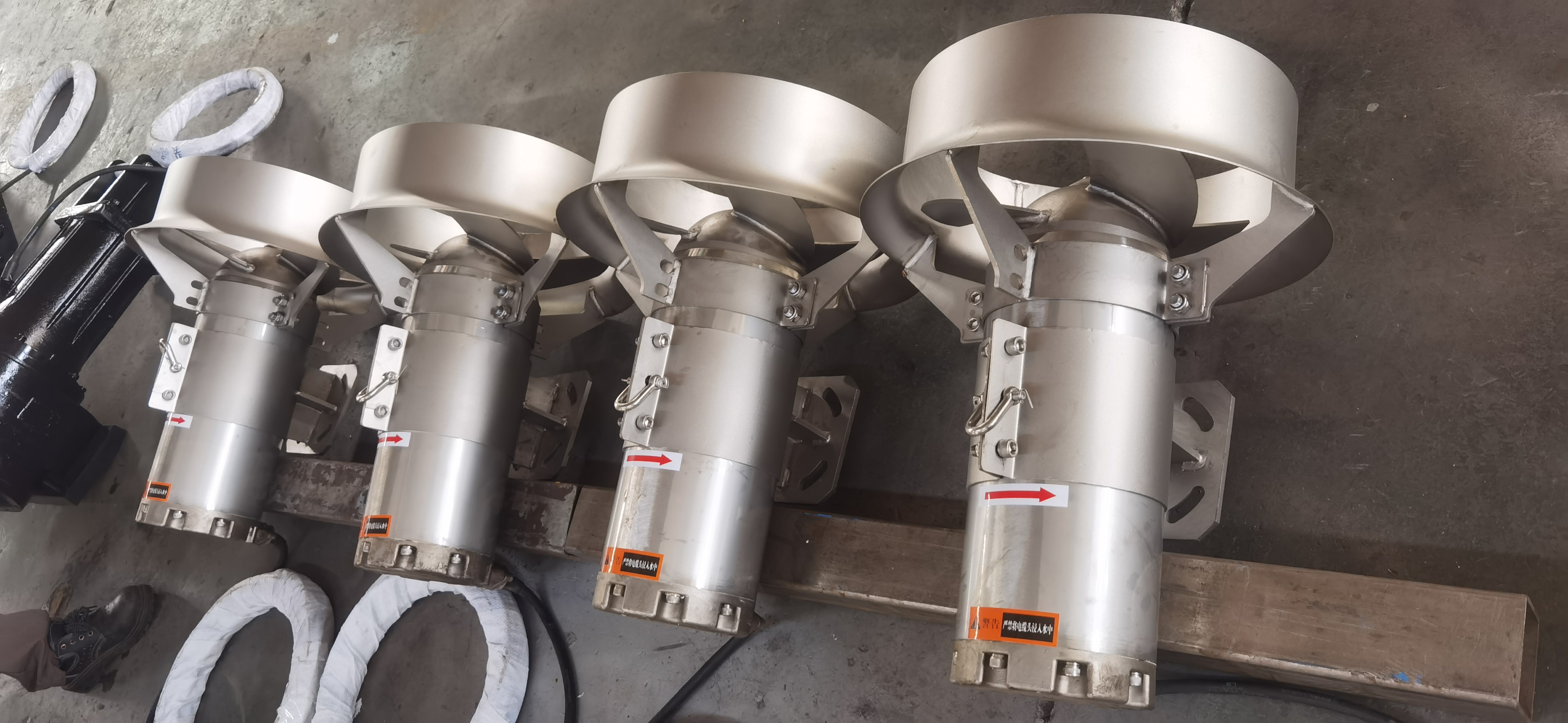 杜安环保QJB1.5/6-260/3-980S潜水搅拌机在全浸没条件下连续工作。桨叶由水下电机直接驱动。