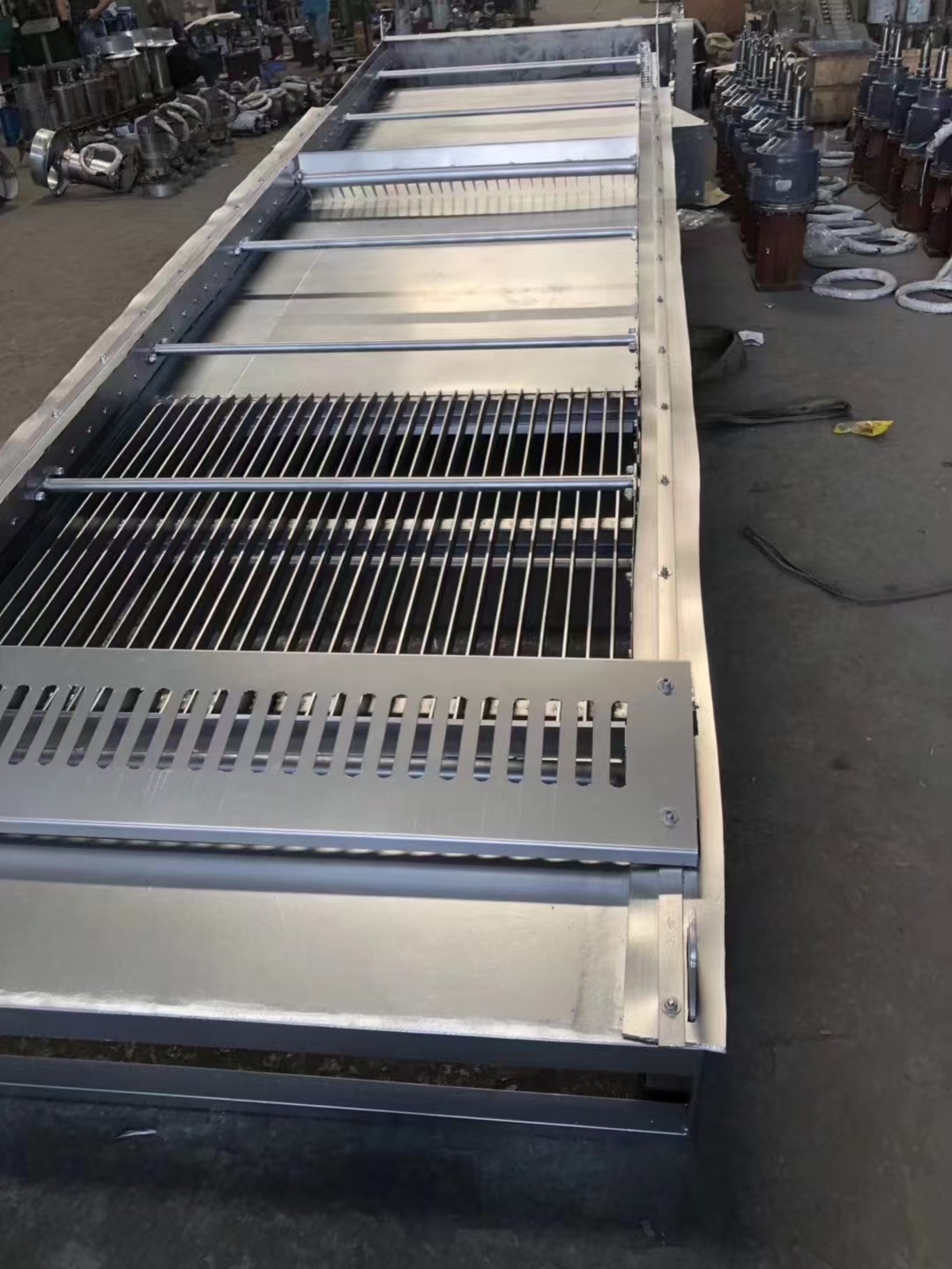 格栅机的机架采用不锈钢板与型钢焊接成一整体式刚性结构,机架材料全部采用不锈钢,二侧板间隔一定距离设置槽钢横撑。整机结构牢固合理,拼装焊接在专用拼装台上,焊接标准按JB/ZQ4000.3-86《焊接件通用技术条件》。焊接后的格栅机架有足够的强度和刚度,在1.0米水位差的工况下不发生扭曲变形现象。