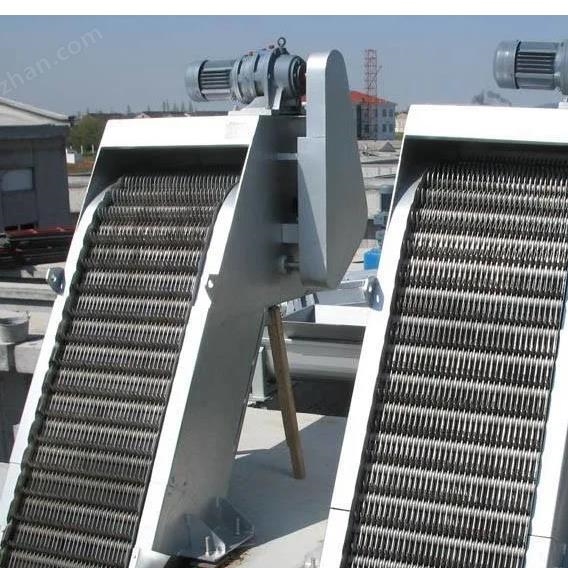 机械格栅,又名回转式格栅除污机,由传动装置(电机、减速机、传动链轮与链条)、耙链系统(除污齿耙、牵引链)、支撑架体、清渣机构等部件组成,并配现场电控箱。